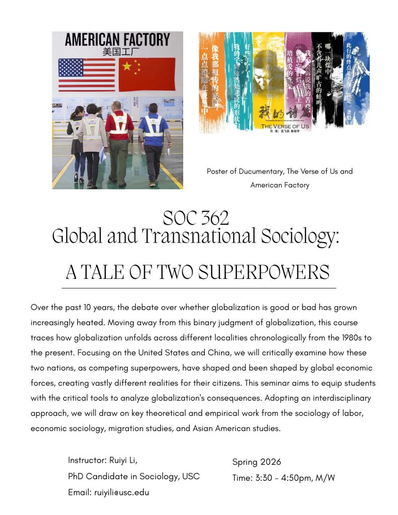 Global and Transnational Sociology: A Tale of Two Superpowers (Spring 2026)